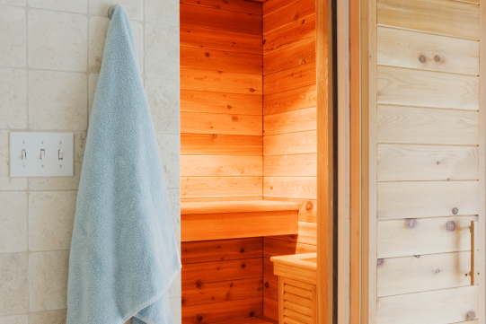 The relaxing warmth of the sauna melts away tension and promotes a feeling of calm.