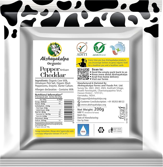 Akshayakalpa Organic Artisan Pepper Cheddar, 200g