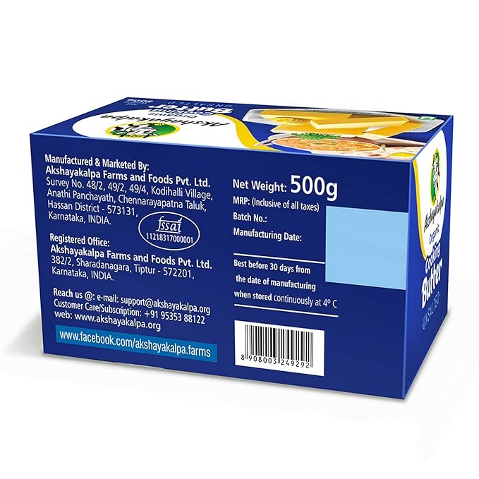Akshayakalpa Organic Cooking Butter Un-salted, 500 g – Blocks Paper