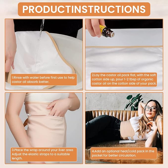 Premium fabric with double-layer soft flannel absorbs castor oil well for better skin contact, washable and reusable for convenience.