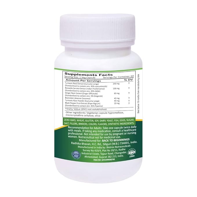 • Our formula features extracts of potent anti-inflammatory botanicals like Turmeric, Boswellia serrata, Bromalain, Ginger, and Black pepper, with 95% Curcuminoids which have been used effectively as a holistic remedy for inflammation modulation