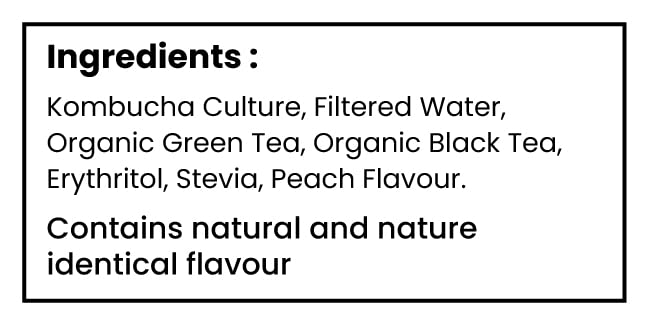 • Dive into a tropical escape with our SCOBY-fermented kombucha tea, capturing the luscious aroma and flavor of exotic peach.
