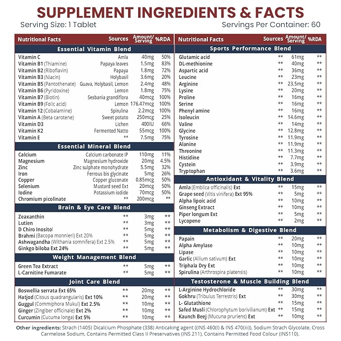 - ENHANCES ENERGY & STAMINA β When you push harder at the gym, you need extra fuel to power through. With Ginseng and Ashwagandha, this multivitamin helps boost energy, strength, and endurance, keeping you at your peak.