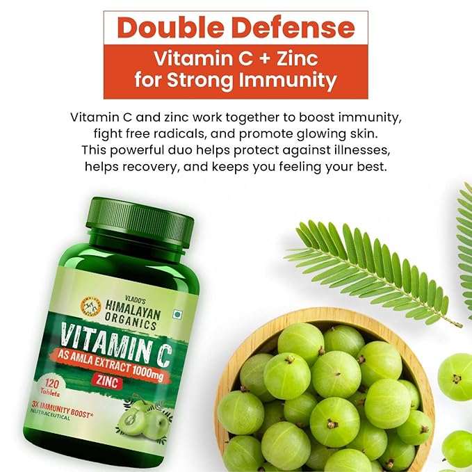 • 100% NATURAL VITAMIN C FROM AMLA EXTRACT : Our Vitamin C tablets with zinc for immunity gives Vitamin C from 1000 mg which is 100% Pure & Natural source of Amla