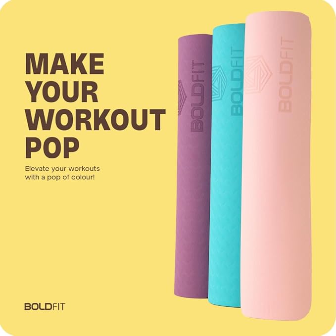 Boldfit Yoga Mat (6ft x 2ft, 6mm Thick) – Durable TPE material cushions spine, hips & knees; includes free carry bag, sweat-resistant, washable, PVC & latex-free, perfect for all shapes & sizes, easy to carry & long-lasting.